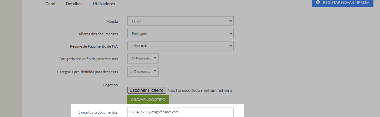 Passo 2 – Na opção “E-mail para documentos” configura um email ao seu gosto ou deixa estar o que aparece por defeito depois arraste o ecrã para baixe e clique no botão Gravar.